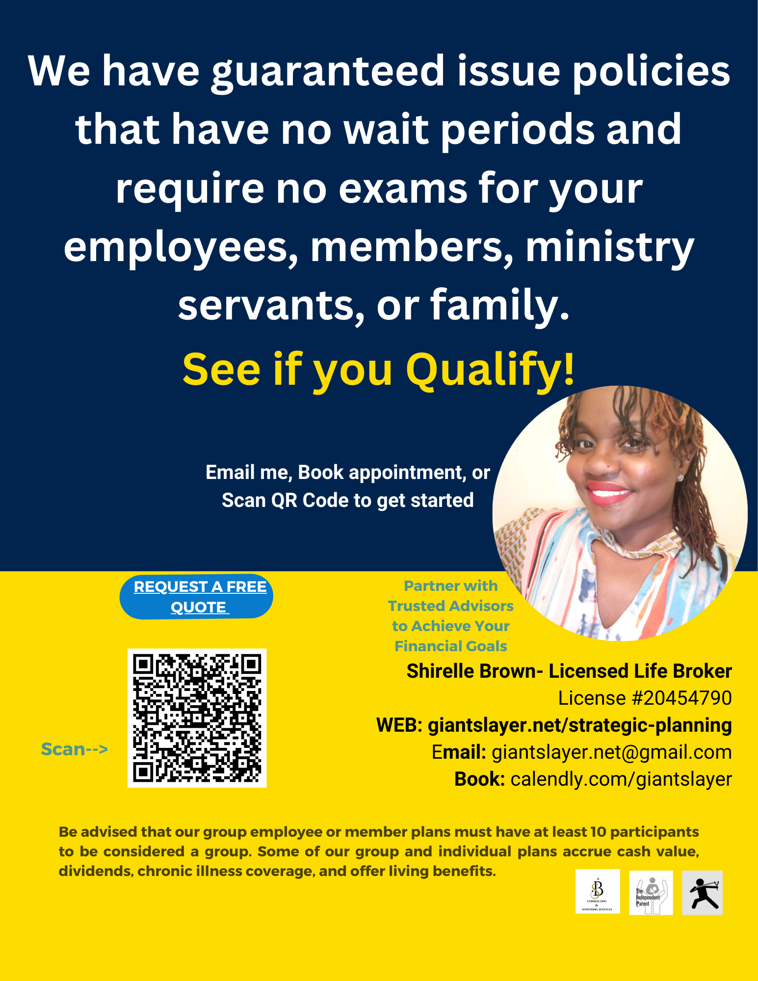 **We also have individual life policies that have living benefits and cash accural available that require no medical exams, contact me to see if you qualify.